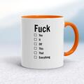 A Fuck For All Occasions Mug A rude mug with "Fuck" and a range of options - "You", "It", "Off", "This", "That" and "Everything" printed on both sides. Simple and straight to the poi...