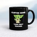 Personalised Yoda Best Teacher MugA novelty mug with a Yoda graphic and 'Yoda Best Teacher' in a star wars style font, personalised with a Teacher's name printed on both sides. Simple and straight...