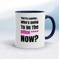 You're Leaving Mug A rude mug with "You're Leaving...Who's Going To Be The Office ... Now?" and your choice of swear word printed on both sides. Simple and straight to the point this rude mug is...