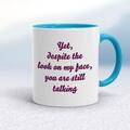 Still Talking Mug A rude mug with "Yet, Despite The Look On My Face, You Are Still Talking" on both sides. Simple and straight to the point this rude mug is great as a gift for any occasion. Our...