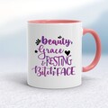 Beauty and Grace Mug A rude mug with "Beauty, Grace and Resting Bitch Face" printed on both sides. Simple and straight to the point this rude mug is great as a gift for any occasion. Our Beauty ...