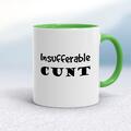 Insufferable Cunt Mug A rude mug with "Insufferable Cunt" printed on both sides. Simple and straight to the point this rude mug is great as a gift for any occasion. Our Insufferable Cunt mug is ...