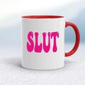 Pink Slut Mug A rude mug with "SLUT" in a pink bold font printed on both sides. Simple and straight to the point this rude mug is great as a gift for any occasion. Our Pink Slut mug is hand-prin...