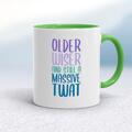 Older Wiser And Still A Massive Mug A rude mug with "Older Wiser And Still A Massive Cunt" or "Twat" or add your custom swearword printed on both sides. Simple and straight to the point this r...