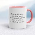 Unix Operating System Mug A geeky mug with "I use a UNIX based operating system, which means I get laid about as often as I reboot my computer" on both sides. Simple and straight to the point th...