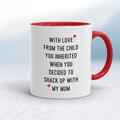 From The Child You Inherited Mug A rude mug with "With Love From The Child You Inherited When You Decided To Shack Up With My ..." Mum or Dad printed on both sides. Simple and straight to the po...