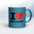 I Love Microsoft Mug - Blue Glitter/White, 10oz