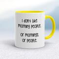 Morning People Mug A novelty mug with "I Don't Like Morning People. Or Mornings. Or People." printed on both sides. Simple and straight to the point this novelty mug is great as a gift for any ...