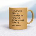 I Love Your Birthday Mug A novelty mug with "I Love Your Birthday. It Reminds Me How Much Older You Are Than Me. Happy Birthday." printed on both sides. Simple and straight to the point this nov...