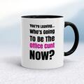 You're Leaving Mug A rude mug with "You're Leaving...Who's Going To Be The Office ... Now?" and your choice of swear word printed on both sides. Simple and straight to the point this rude mug is...