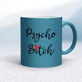 Psycho Bitch Mug - Blue Glitter/White, 10oz