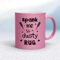 Spank Me Mug A rude mug with "Spank Me Like A Dusty Rug" printed on both sides. Simple and straight to the point this rude mug is great as a gift for any occasion. Our Spank Me mug is hand-print...