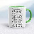 I'm An Intelligent Classy Man Mug A rude mug with "I'm An Intelligent Classy Well Educated Man Who Says ... A Lot" and your choice of either cunt or fuck. on both sides. Simple and straight to t...
