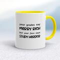 Study Harder Mug A novelty mug with "your grades say Marry Rich but your face says Study Harder" printed on both sides. Simple and straight to the point this novelty mug is great as a gift for a...