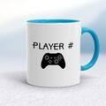 XBox Player Mug A geeky mug with a game controller graphic beneath "Player" and the number of your choice printed on both sides. Simple and straight to the point this geeky mug is great as a gif...