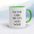 God Of Tits And Wine Mug A novelty mug with "I'm The God Of Tits And Wine" printed on both sides. Simple and straight to the point this novelty mug is great as a gift for any occasion. Our God O...