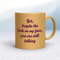 Still Talking Mug A rude mug with "Yet, Despite The Look On My Face, You Are Still Talking" on both sides. Simple and straight to the point this rude mug is great as a gift for any occasion. Our...