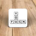 Scrabble Tiles You Fuck CoasterA rude gift coaster with the words 'You Fuck' spelled out in the style of Scrabble tiles printed on a high gloss coaster. Simple and straight to the point this rude...