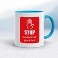 Stop Mug A rude mug with "Stop I Really Don't Give A Fuck" printed on both sides. Simple and straight to the point this rude mug is great as a gift for any occasion. Our Stop mug is hand-printed...