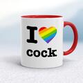 I Love Cock Pride Mug A rude mug with ""I Love Cockl" with a Pride rainbow heart" printed on both sides. Simple and straight to the point this rude mug is great as a gift for any occasion. Our...