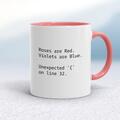 Roses Are Red MugA geeky mug with 'Roses Are Red. Violets Are Blue. Unexpected '{' On Line 32' printed on both sides. Simple and straight to the point this geeky mug is great as a gift for any occ...