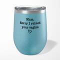 Ruined Your Vagina Wine TumblerOur Ruined Your Vagina 12oz tumbler is hand-printed with 'Mum, Sorry I Ruined Your Vagina' on both sides (front/back) of an insulated stainless steel wine tumbler an...