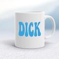 Blue Dick Mug A rude mug with "DICK" in a blue bold font printed on both sides. Simple and straight to the point this rude mug is great as a gift for any occasion. Our Blue Dick mug is hand-prin...