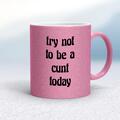 Try Not To Be Mug A rude mug with "Try Not To Be A Cunt Today" printed on both sides. Simple and straight to the point this rude mug is great as a gift for any occasion. Our Try Not To Be mug is...