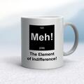Meh! The Element Of Indifference MugA geeky mug with 'Meh! The Element Of Indifference' printed on both sides. Simple and straight to the point this geeky mug is great as a gift for any occasion.O...