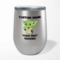 Personalised Yoda Best Teacher Wine TumblerOur Personalised Yoda Best Teacher 12oz tumbler is hand-printed with 'Personalised Yoda Best Teacher' on both sides (front/back) of an insulated stainles...