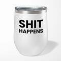 Shit Happens Wine TumblerOur Shit Happens 12oz tumbler is hand-printed with 'Shit Happens' on both sides (front/back) of an insulated stainless steel wine tumbler and available in a variety of col...