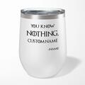 Personalised You Know Nothing Wine TumblerOur Personalised You Know Nothing 12oz tumbler is hand-printed with 'Personalised You Know Nothing' on both sides (front/back) of an insulated stainless s...