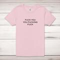 Fuck You, You Fucking Fuck Adult T-ShirtA rude unisex adult t-shirt with 'Fuck You, You Fucking Fuck' printed across the front of a 100% cotton* t-shirt. This rude t-shirt is great as a gift for a...