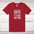 What Do We Want Coffee Adult T-ShirtA rude unisex adult t-shirt with 'What Do We Want? Coffee When Do We Want It? I'll Fucking Cut You' printed across the front of a 100% cotton* t-shirt. This rud...