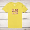 You Make My Pussy Go Gushy Adult T-ShirtA rude unisex adult t-shirt with 'You Make My Pussy Go Gushy' printed across the front of a 100% cotton* t-shirt. This rude t-shirt is great as a gift for a...