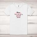 Mum, You're One Of My Favourite Parents Adult T-ShirtA novelty unisex adult t-shirt with 'Mum, You're One Of My Favourite Parents' printed across the front of a 100% cotton* t-shirt. This novelty ...