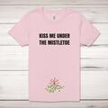 Kiss Me Under The Mistletoe Adult T-ShirtA novelty unisex adult t-shirt with 'Kiss Me Under The Mistletoe' printed across the front of a 100% cotton* t-shirt. This novelty t-shirt is great as a gi...