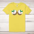Christmas Pud Boobs Adult T-Shirt - Yellow, 4XL