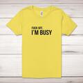 Fuck Off, I'm Busy Adult T-Shirt A rude unisex adult t-shirt with "Fuck Off, I'm Busy" printed across the front of a 100% cotton* t-shirt. This rude t-shirt is great as a gift for any occasion. ...