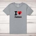 I Love My Rabbit Adult T-Shirt A fantastic, rude, 100% cotton* adult t-shirt with "I Love My Rabbit" printed across the front. Simple and straight to the point this rude t-shirt is great as a gi...