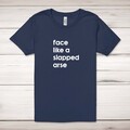 Slapped Arse Adult T-Shirt A rude adult t-shirt with "face like a slapped arse" printed across the front of a 100% cotton* unisex t-shirt. This rude t-shirt is great as a gift for any occasion. ...