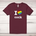I Love Cock Pride Adult T-Shirt A rude adult t-shirt with ""I Love Cockl" with a Pride rainbow heart" printed across the front of a 100% cotton* t-shirt. This rude t-shirt is great as a gift f...