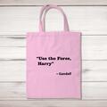 Use The Force Tote Bag A geeky shopping bag with "Use The Force, Harry ~ Gandalf" printed on the front of a 100% cotton tote bag. This geeky bag is a perfect replacement for plastic bags in reta...