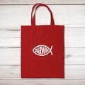 Darwin Christian Fish Tote Bag A novelty shopping bag with "Darwin Christian Fish" printed on the front of a 100% cotton tote bag. This novelty bag is a perfect replacement for plastic bags in r...