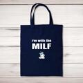I'm With The Milf Tote Bag A rude shopping bag with "I'm With The Milf" printed on the front of a 100% cotton tote bag. This rude bag is a perfect replacement for plastic bags in retail, superma...