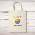 I'm Not Lazy Tote Bag A novelty shopping bag with "I'm Not Lazy I'm Buffering" printed on the front of a 100% cotton tote bag. This novelty bag is a perfect replacement for plastic bags in retai...