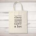 I'm An Intelligent Classy Woman Tote Bag A rude shopping bag with "I'm An Intelligent Classy Woman" printed on the front of a 100% cotton tote bag. This rude bag is a perfect replacement for pla...