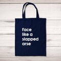 Slapped Arse Tote Bag A rude shopping bag with "face like a slapped arse" printed on the front of a 100% cotton tote bag. This rude bag is a perfect replacement for plastic bags in retail, super...