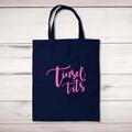 Tinsel Tits Tote Bag A rude shopping bag with "Tinsel Tits" printed on the front of a 100% cotton tote bag. This rude bag is a perfect replacement for plastic bags in retail, supermarkets and an...