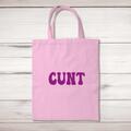 Purple Cunt Tote Bag A rude shopping bag with "CUNT" in a purple bold font printed on the front of a 100% cotton tote bag. This rude bag is a perfect replacement for plastic bags in retail, supe...